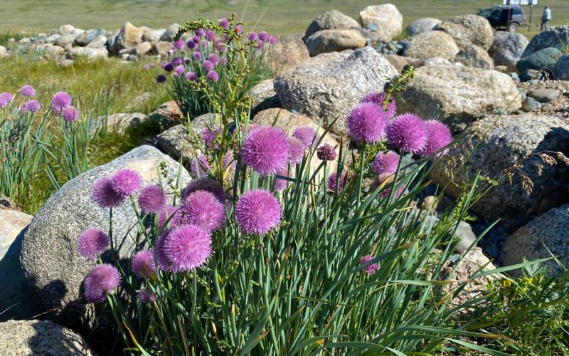 Место захоронения ничем примечательным не казалось. Груда камней, выложенных по кругу, поросла изрядно травой. А вокруг просто заросли лука. Кто на что едет смотреть на Укок, а мы – на луки.
