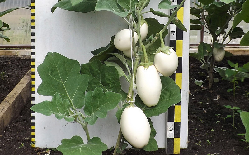 Растение удивительно урожайное. Несмотря на достаточно компактный вид (высота его 50-70 см), плоды дает крупные, массой до 250 г. Баклажан Мечта грибника овальной формы, имеет мягкую корочку, белую, очень нежную, без горечи мякоть.