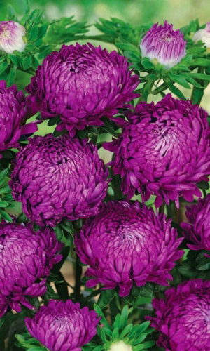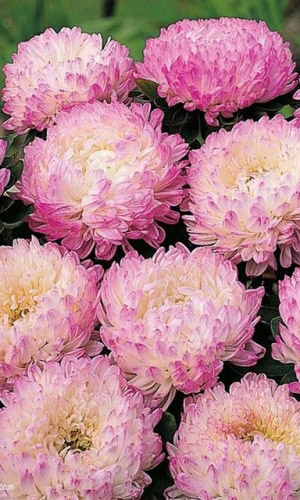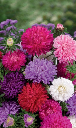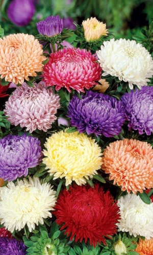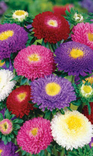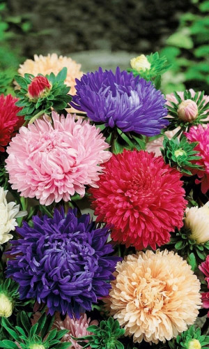 Великолепная смесь окрасок высокорослых, обильноцветущих астр, с крупными, густомахровыми соцветиями. Кусты широкораскидистые, прочные, высотой 60-70 см. Соцветия-корзинки полусферические, почти шаровидные, похожи на пионовидные, разнообразных окрасок. Декоративная...