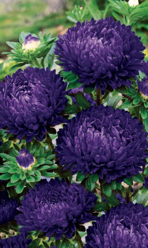 Великолепная серия крупноцветковых астр универсального назначения – на срезку и для украшения цветников. Формирует пышный, пирамидальный куст высотой 90-100 см. Соцветия густомахровые, полусферической формы, диаметром более 12 см, на длинных, прочных цветоносах. Цветет обильно, длительно с начала августа до устойчивых заморозков. Обладает сравнительно высокой устойчивостью к болезням. ...