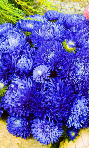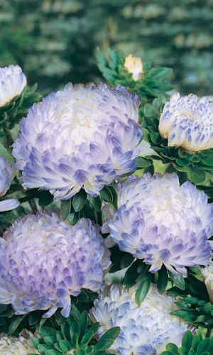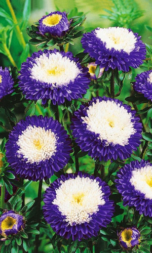 Чудесные двухцветные астры!Привлекательная обильно цветущая смесь с изящными двухцветными махровыми цветами, высотой до 50 см. Соцветия плоскоокруглые, синие с белым центром, диаметром 5-6 см. Образует до 30 соцветий. Растение предпочитает солнечные места. Цветет с июля...