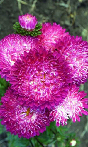 Самые ранние букеты из астр. Растение высотой 30-45 см, компактное, сильноветвистое, стебли крепкие. Соцветия махровые, диаметром 4-6 см, разнообразной окраски. Используют очень широко: для посадки в сборные цветники группами, на рабатки – рядами и на срезку...