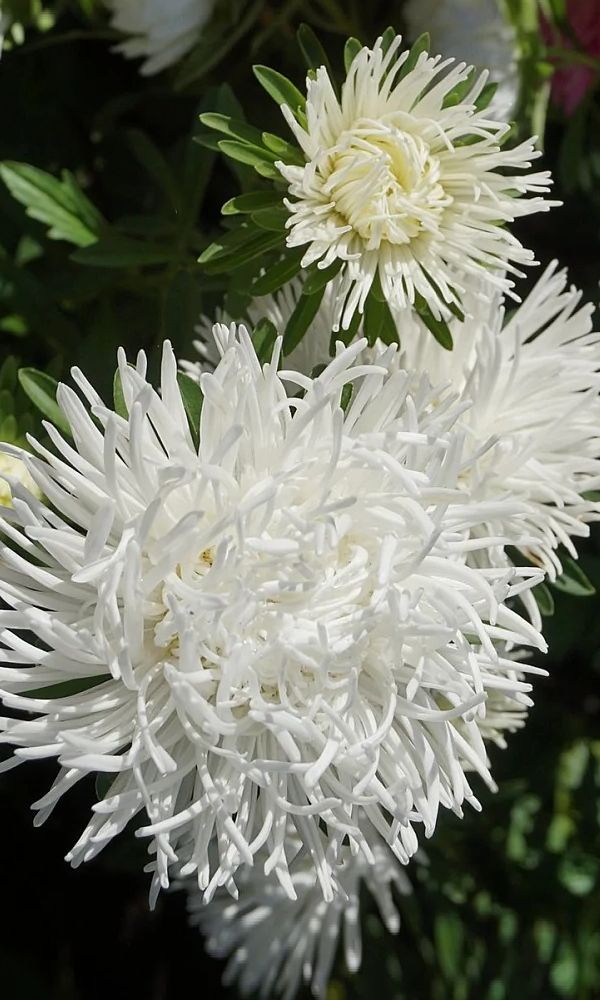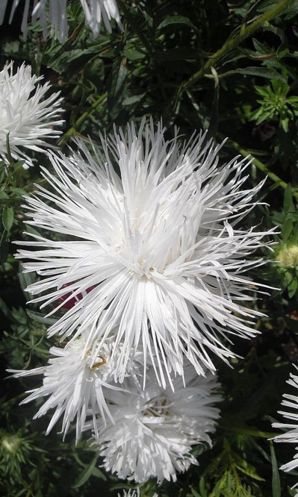 Высокая, элегантная астра, особо декоративна из-за необычных цветков. Соцветия плотные, махровые, кипельно-белой окраски, состоят из длинных, немного закрученных по длине в тонкие трубки и красиво завитых по спирали язычковых цветков. За период вегетации этот сорт...