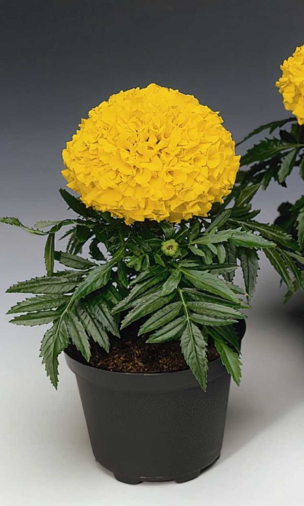 Великолепные крупные махровые соцветия. Куст компактный, высотой до 90 см. Побеги прочные, ребристые, светло-зелёные. Соцветия гвоздиковидные, полушаровидные, до 10 см в диаметре, лимонно-жёлтые. Используют для клумб, рабаток, высоких групп, на срезку. Цветёт с мая по сентябрь. ...