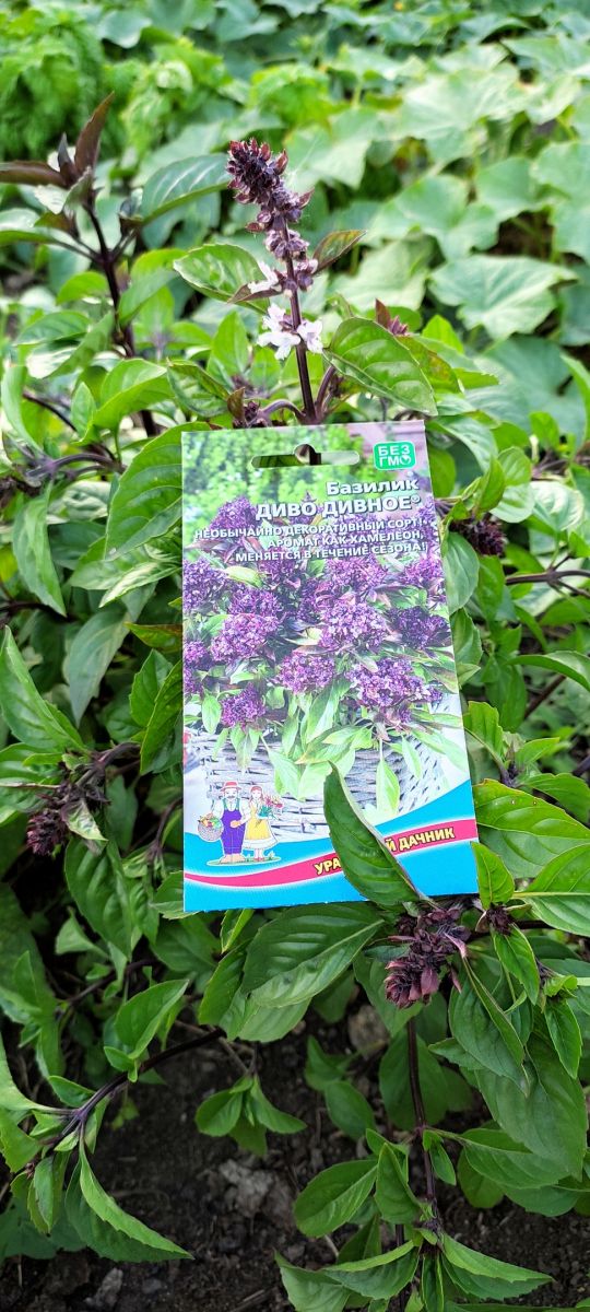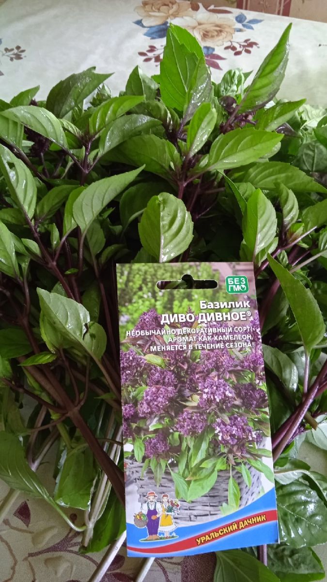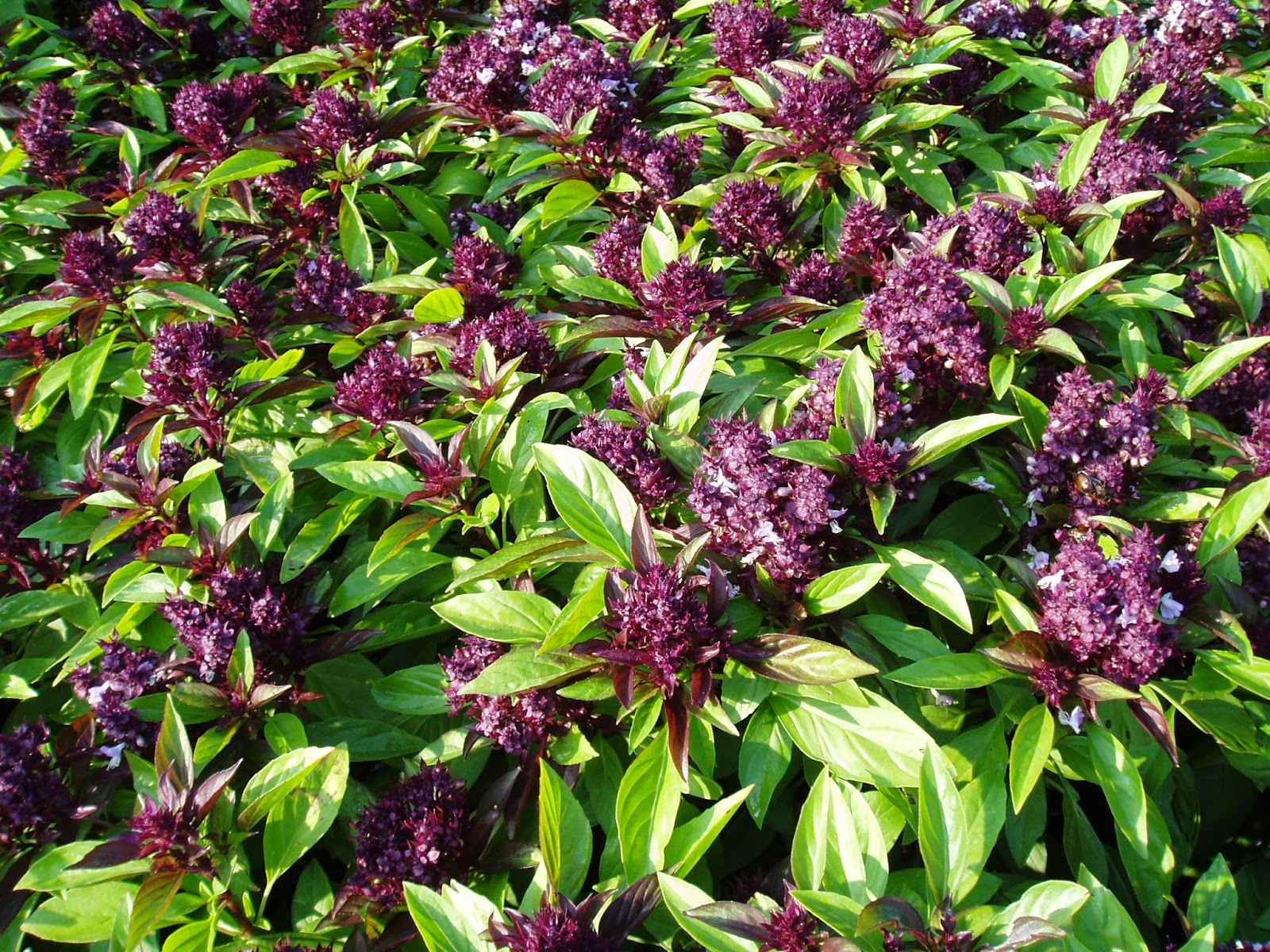 Один из самых декоративных базиликов. Крупные, восхитительные зелёные листья контрастируют с квадратными в разрезе пурпурными стеблями и тёмно-лиловыми гроздьями соцветий. Соцветия по своей форме напоминают ещё не распустившиеся гроздья сирени с сильным ароматом. В результате позднего цветения, растение успевает сформировать богатый урожай листьев с пикантным ароматом, напоминающим нечто среднее между ароматами корицы и анисовым базиликом. Содержат витамины С, В1, В2, РР, эфирные масла, фитонциды. Выращивают в открытом и закрытом грунте. Можно выращивать круглый год как горшечную культуру. Свежая листва используется в течение всего периода вегетации.