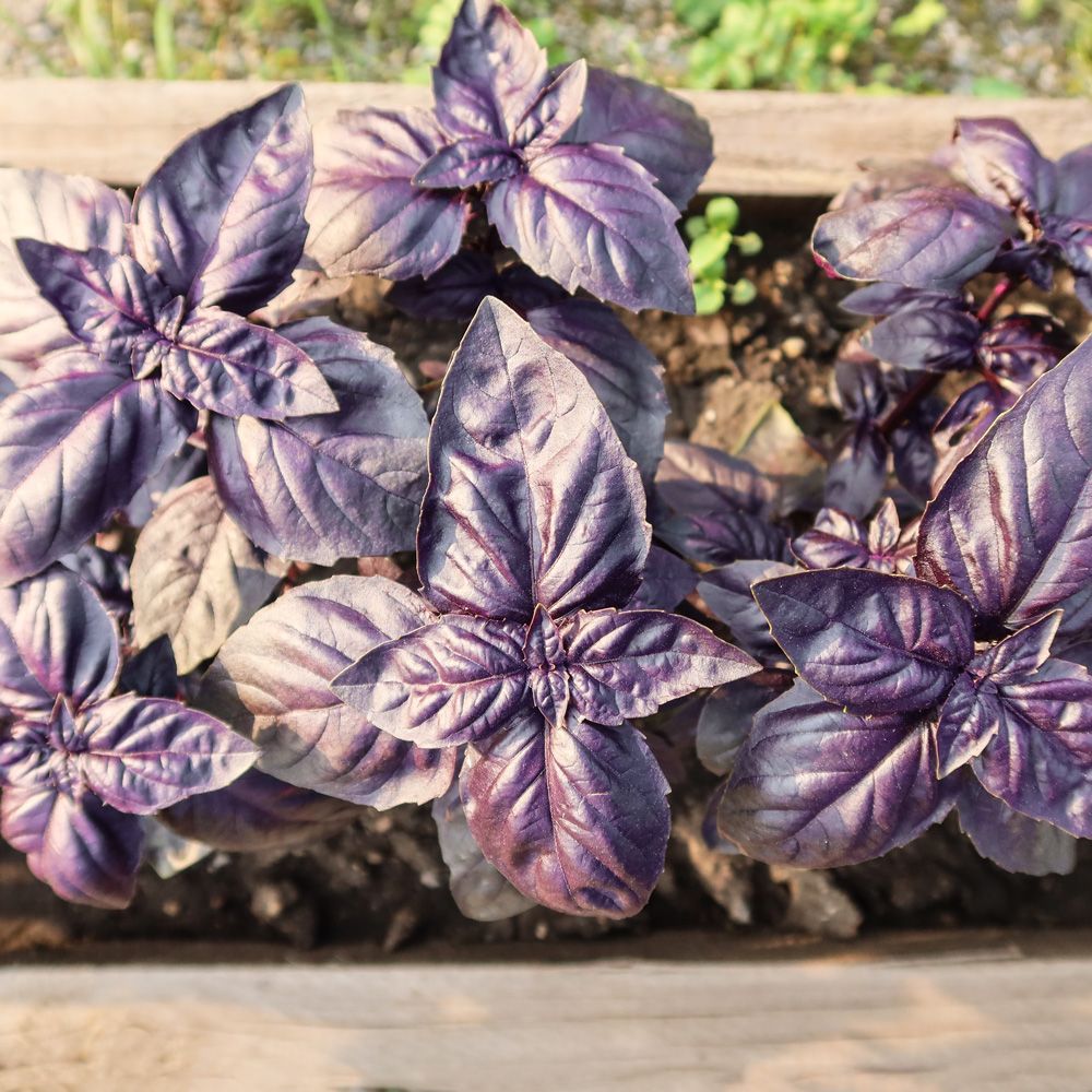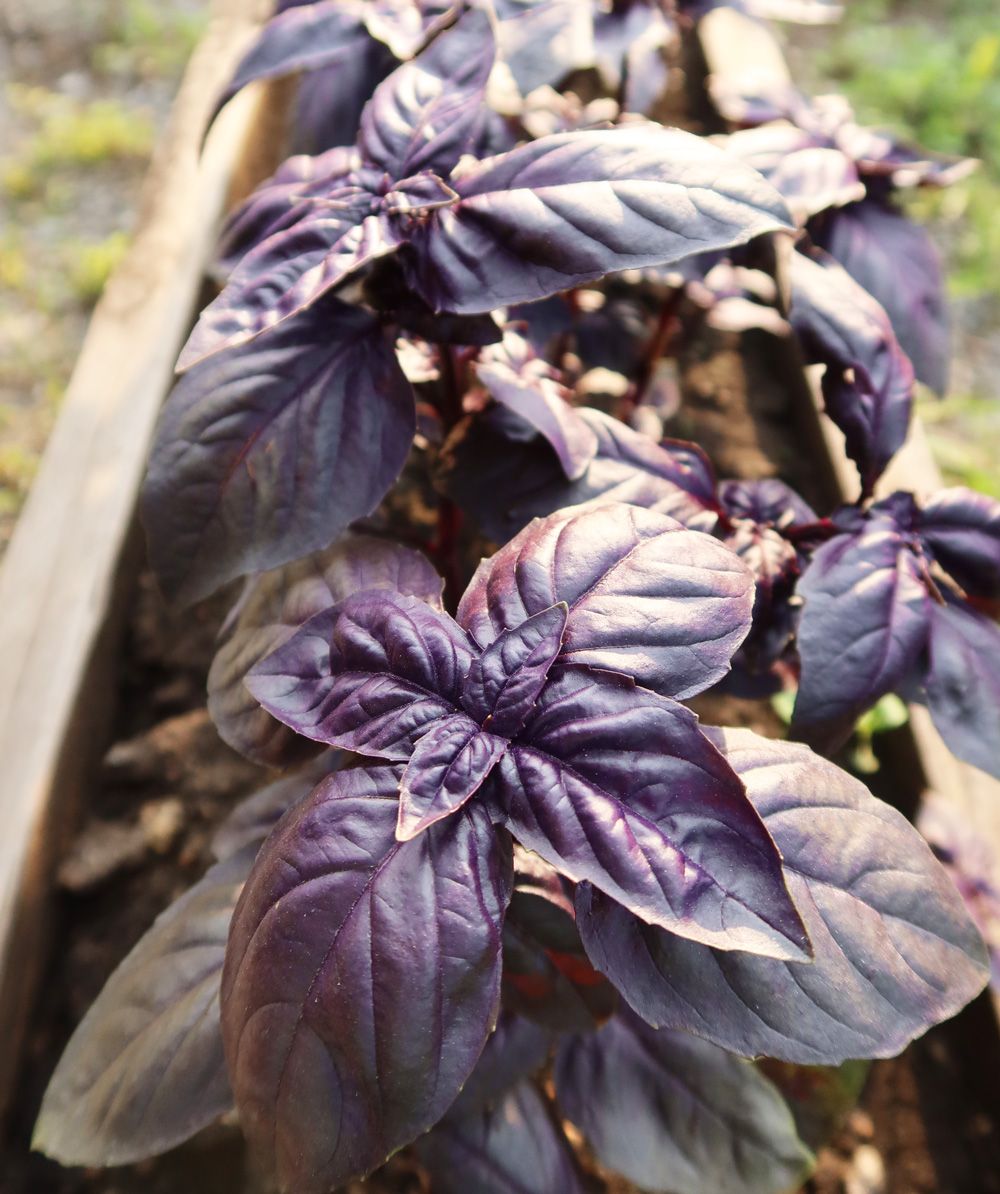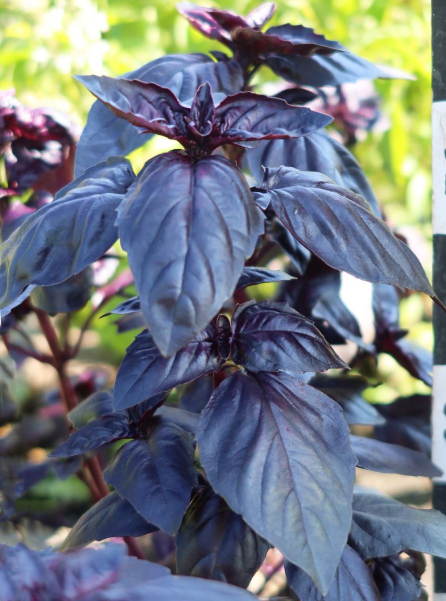 Среднеранний сорт с сияющей глянцевой листвой глубокого тёмно-бордового оттенка и изысканным ароматом гвоздики и корицы. Характеризуется быстрым отрастанием листвы после срезки. Рекомендуется для выращивания в открытом грунте, хорошо растет на домашнем подоконнике.