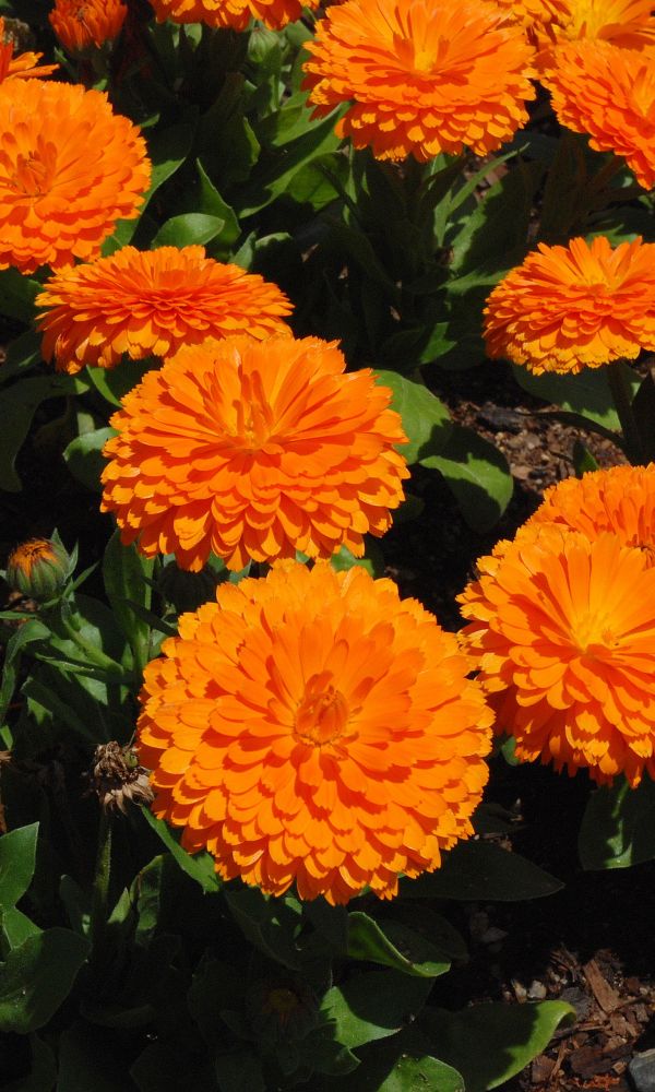 Яркие крупные цветки. Куст густоветвистый, высотой до 60 см. Соцветия махровые, 7-8 см в диаметре, плотные, черепитчатые, ярко-оранжевые. Используют для клумб, рабаток, бордюров и срезки...