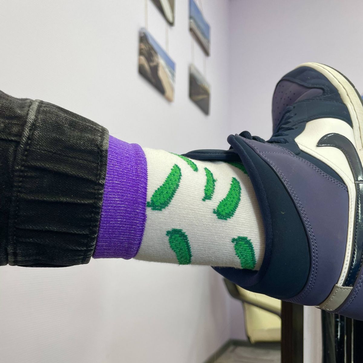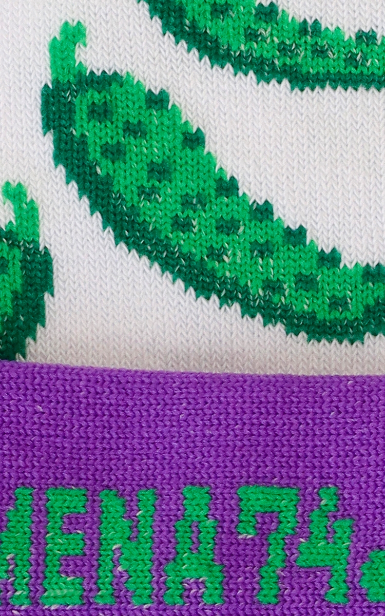 Носки в фирменных фиолетово-зелёных цветах интернет-магазина с подписью на подошве. Огурцы-гиганты прилагаются!)