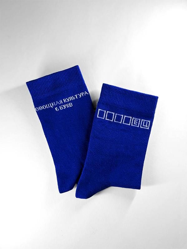 Носки с загадкой-ребусом из «всем известной передачи» и надписью на подошве.