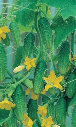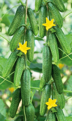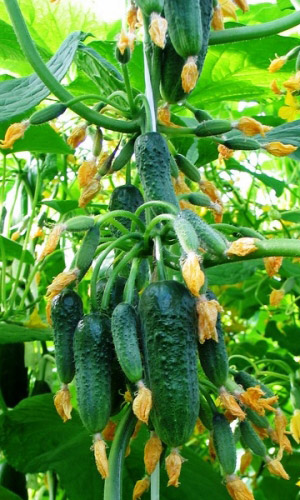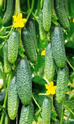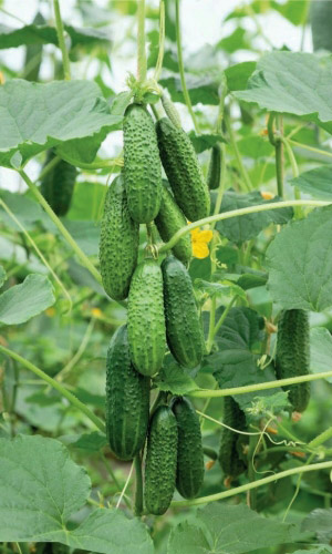 Самоопыляемый! Суперпопулярный пучковый гибрид! Холодостойкий, с длительным плодоношением, до заморозков! Крепкий, обалденно вкусный, хрустящий, без горечи! Создан для засолки! Плоды крупно-бугорчатые, белошипые, длиной 10-12 см, плотные, сладкие. От обилия плодов не видно листьев! Не перерастает, не бывает горьким, не образует пустот при консервировании и засолке...