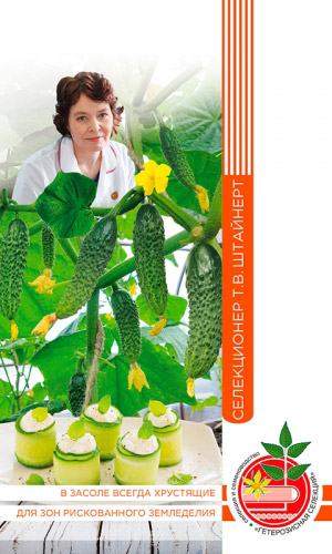 Скороспелый, высокоурожайный, пчёлоопыляемый сорт, предназначен для выращивания в открытом грунте. Зеленцы цилиндрические, мелкобугорчатые, белошипые, длиной 10-12 см, массой 90-100 г, хрустящие.Вкус отличный, без горечи. Сохраняют плотность и упругость при солении и мариновании. Отлично подходят для потребления в свежем виде и консервирования. Обладает высокой холодостойкостью (!), устойчив к болезням. Урожайность 6,5-7,5 кг/м2...