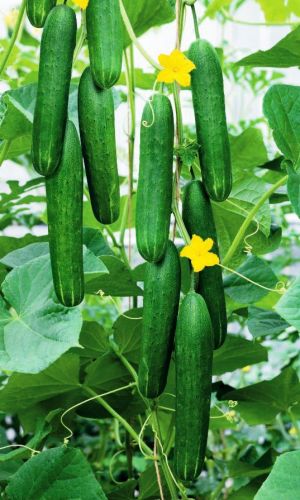 Среднеспелый (50-55 дней) гибрид для защищённого грунта с высокой степенью партенокарпии. Растение среднерослое, среднеоблиственное, не сложное в уходе. Зеленцы удлинённо-цилиндрические, тёмно-зелёные, глянцевые, длиной 20-22 см, с редкими крупными бугорками. Мякоть плотная,...