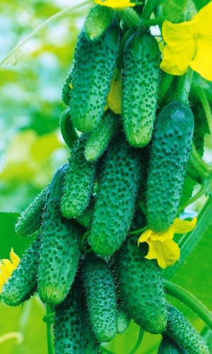 Высокоурожайный, пучковый гибрид для выращивания в открытом и закрытом грунте. Зеленцы корнишонного типа, крупнобугорчатые, белошипые, длиной 8-12 см, очень сладкие, без горечи. В узлах формируется от 2-5 до 8-10 завязей. Ценность сорта: ограниченное ветвление, устойчивость к...