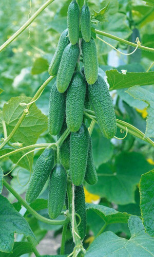 Самоопыляемый! Суперпопулярный пучковый гибрид! Холодостойкий, с длительным плодоношением, до заморозков! Крепкий, обалденно вкусный, хрустящий, без горечи! Создан для засолки! Плоды крупно-бугорчатые, белошипые, длиной 10-12 см, плотные, сладкие. От обилия плодов не видно листьев! Не перерастает, не бывает горьким, не образует пустот при консервировании и засолке...