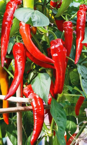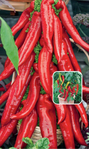 Высокоурожайный, среднеспелый сорт для открытого грунта и плёночных теплиц. Куст высотой 50-60 см. Плоды красные, пониклые, узкоконусовидные, очень длинные, слабоморщинистые, скручены по спирали, длиной 20-30 см, пикантного острого вкуса, сочные и очень ароматные. Используют как приправу, для маринования и консервирования. При консервировании семена не удаляют. Высушенные плоды – отличное украшение для кухни...