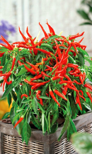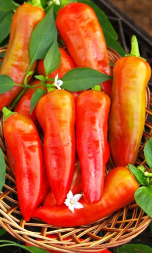 Раннеспелый, декоративный сорт для выращивания в открытом грунте и под плёночными укрытиями, на балконе и подоконнике. Плоды красные, удлинённо-конусовидные, гладкие, глянцевые, направлены вверх, массой до 20 г. Мякоть сочная, острая. Ценность сорта: растянутое плодоношение, устойчивость к перепадам температуры, красивый декоративный вид, великолепный аромат...