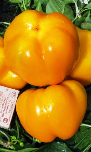 Раннеспелый (105-110 дней) сорт для открытого грунта и пленочных укрытий. Растение среднерослое, слабораскидистое, высотой 55-60 см. Плоды крупные, кубовидные, сильноглянцевые, в технической спелости тёмно-зелёные, в биологической – ярко-оранжевые, массой 150-200 г, толщина стенки...