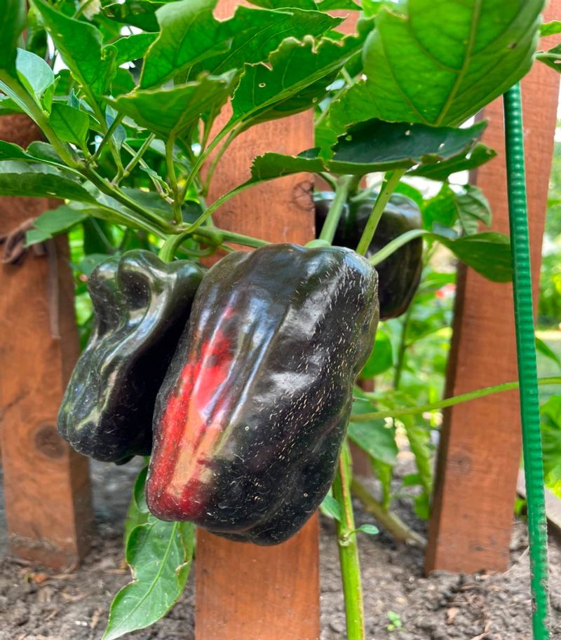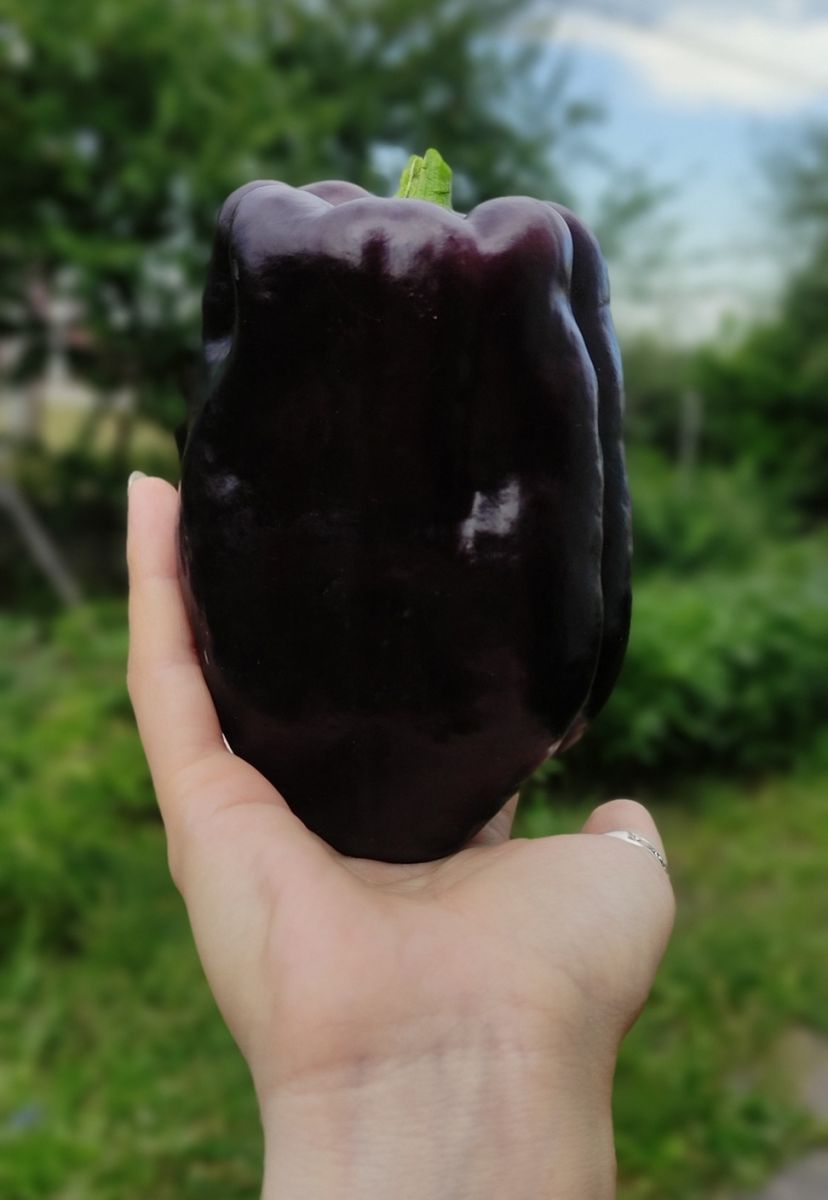 Растения высотой до 100 см. Плоды крупные, кубовидной формы, в технической спелости фиолетового цвета, в биологической тёмно-красного цвета, массой 250-280 г. Толщина стенки плода до 8 мм.