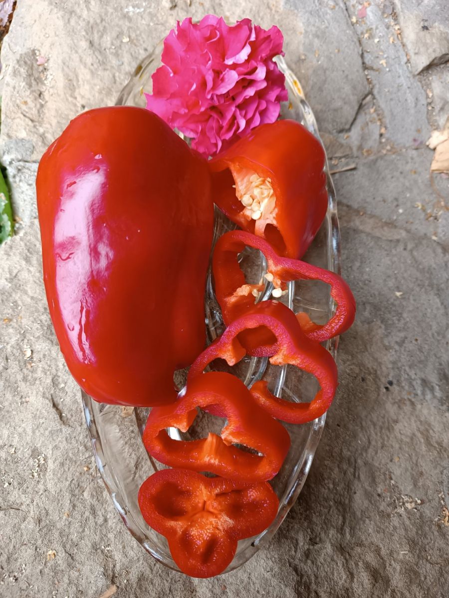 Раннеспелый гибрид для открытого грунта и пленочных укрытий. Растение высотой 65-75 см. Плоды крупные, кубовидные, красные, массой 150-200 г, толщина стенки 8-12 мм, сладкого, сочного вкуса. На растении одновременно созревает 10-12 плодов.
