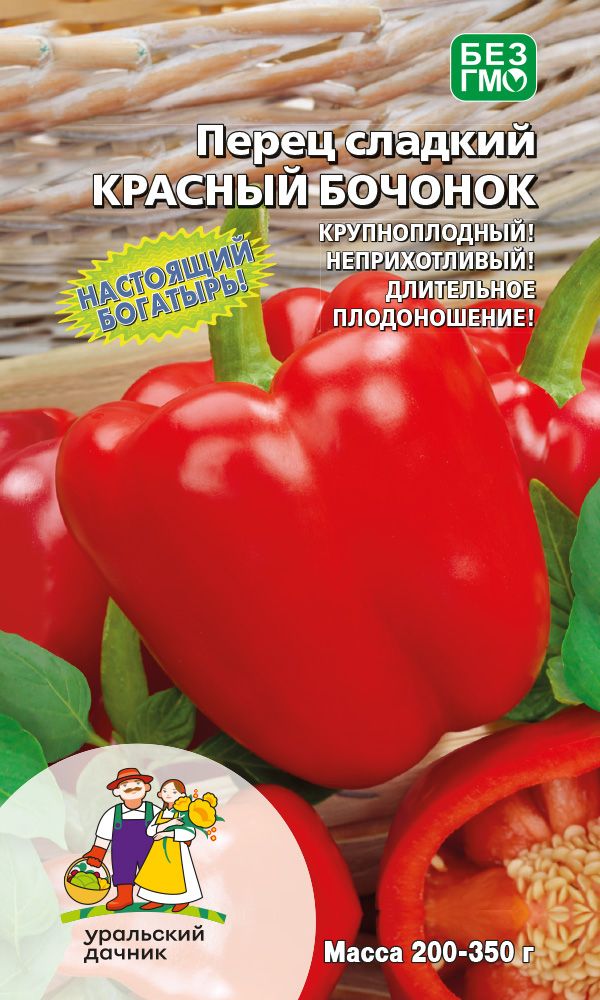 Среднеспелый сорт для открытого грунта и плёночных теплиц. Период от всходов до созревания плодов 125-135 дней. Растение высотой 55-75 см, полураскидистое. Плоды пониклые, кубовидные, глянцевые, в технической спелости тёмно-зелёные, в биологической – тёмно-красные. Толщина стенки плода 5-7 мм. Масса плода 200-350 г. Вкусовые качества отличные. Используется для свежего потребления и консервирования.