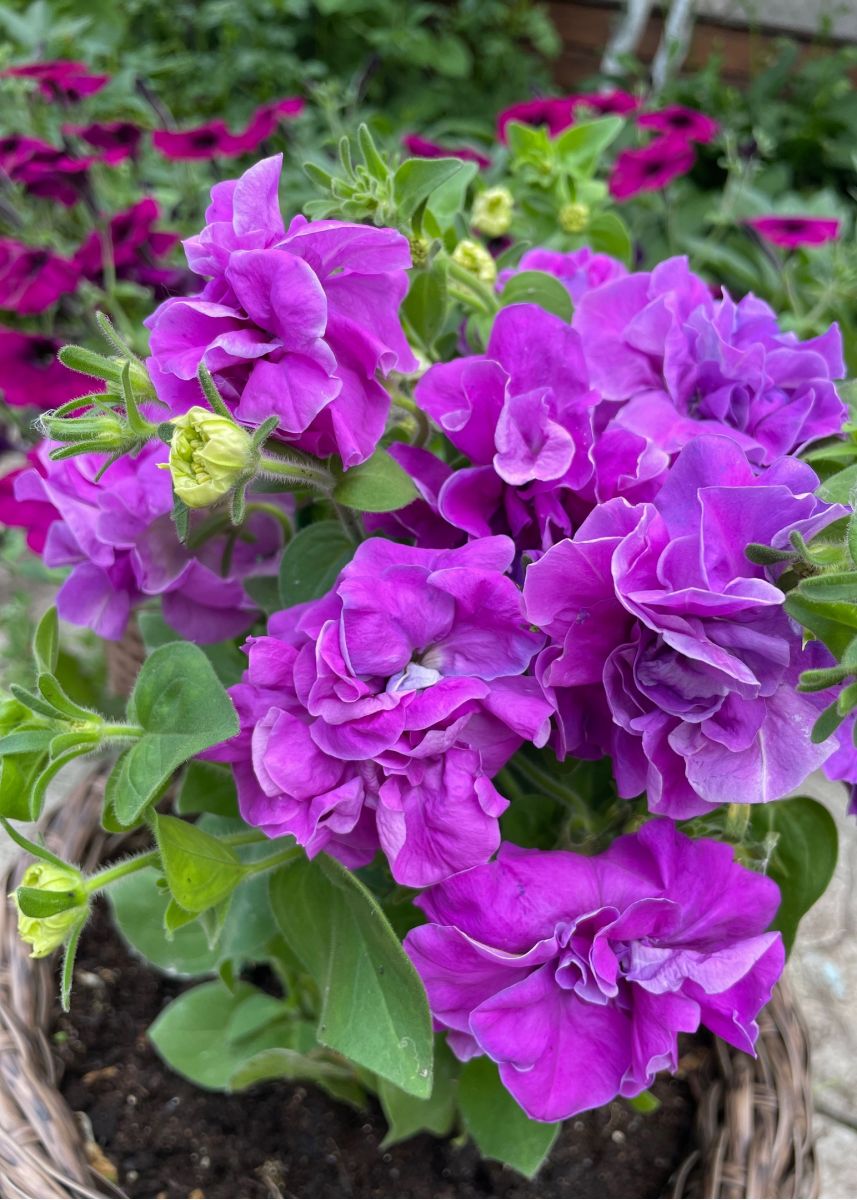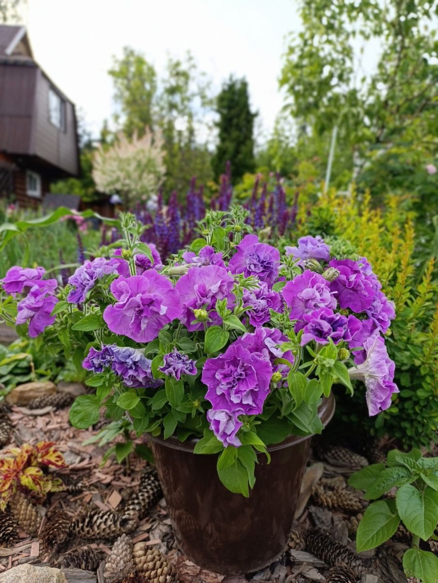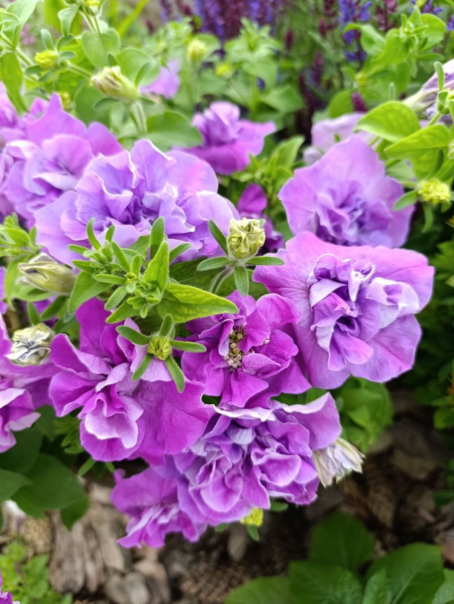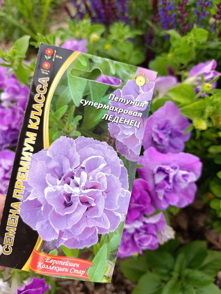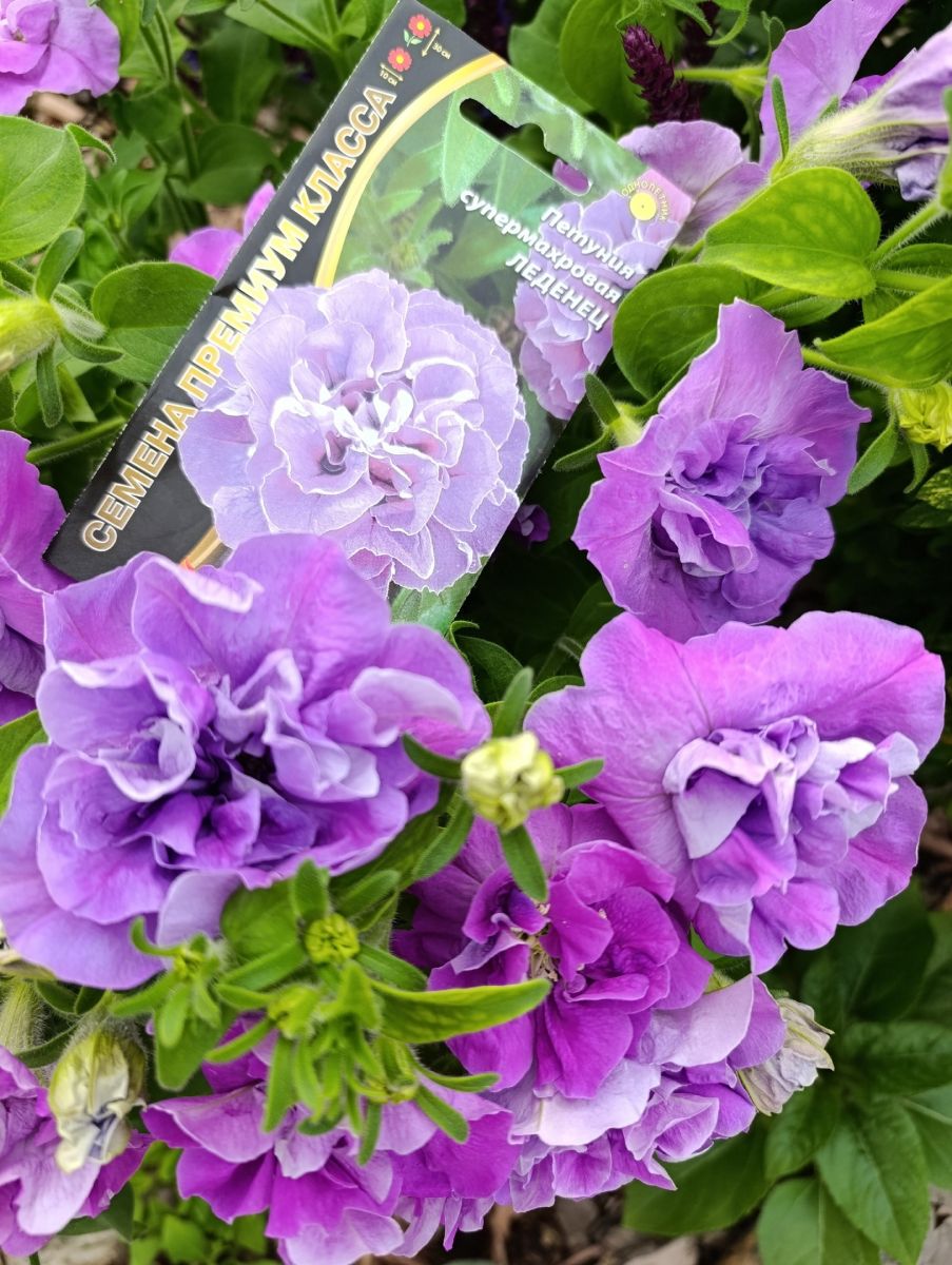 ОднолетнееШикарная махровая, крупноцветковая петуния отличается компактным кустом, высотой 20-30 см и обилием махровых цветков, с сильногофрированными лепестками, диаметром до 10 см, лавандового цвета. Используется в оформлении клумб, вазонов, балконных ящиков. Характеризуется пышным, длительным и обильным цветением.