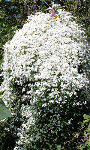 Сильнорослая кустарниковая лиана длиной 3-5 м. Листья тёмно-зелёные, перистые. Цветки раскрытые, крестообразные, мелкие (до 3 см в диаметре) собраны в пышные соцветия, чашелистиков 4, они белые, пыльники жёлтые. Обильно цветёт в июле-августе многочисленными мелкими белыми...