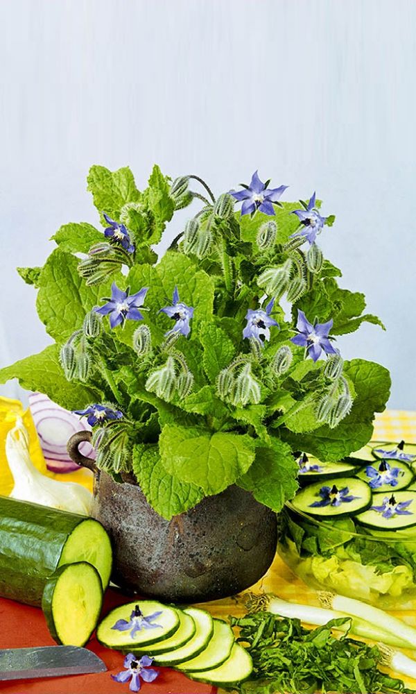 Бораго (огуречная трава) прекрасен в салате и окрошке.Включён в Госреестр по Российской Федерации для выращивания в ЛПХ. Рекомендуется для использования молодых побегов и листьев в свежем и сушёном виде в качестве приправы к овощным блюдам, при консервировании и...