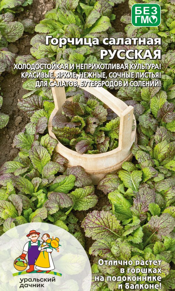 Среднеспелый, холодостойкий сорт с быстрым нарастанием вегетативной массы. Период от всходов до сбора урожая 22-25 дней. Листья крупные, цельные, тёмно-зелёные, с интенсивным антоциановым оттенком, со слабоострым привкусом, напоминающим столовую горчицу. Масса растения 60-70 г.Сорт отличается высокой облиственностью и устойчивостью к преждевременному стеблеванию. Растения дают нежную витаминную продукцию с ранней весны до поздней осени, используются в свежем виде в салатах...