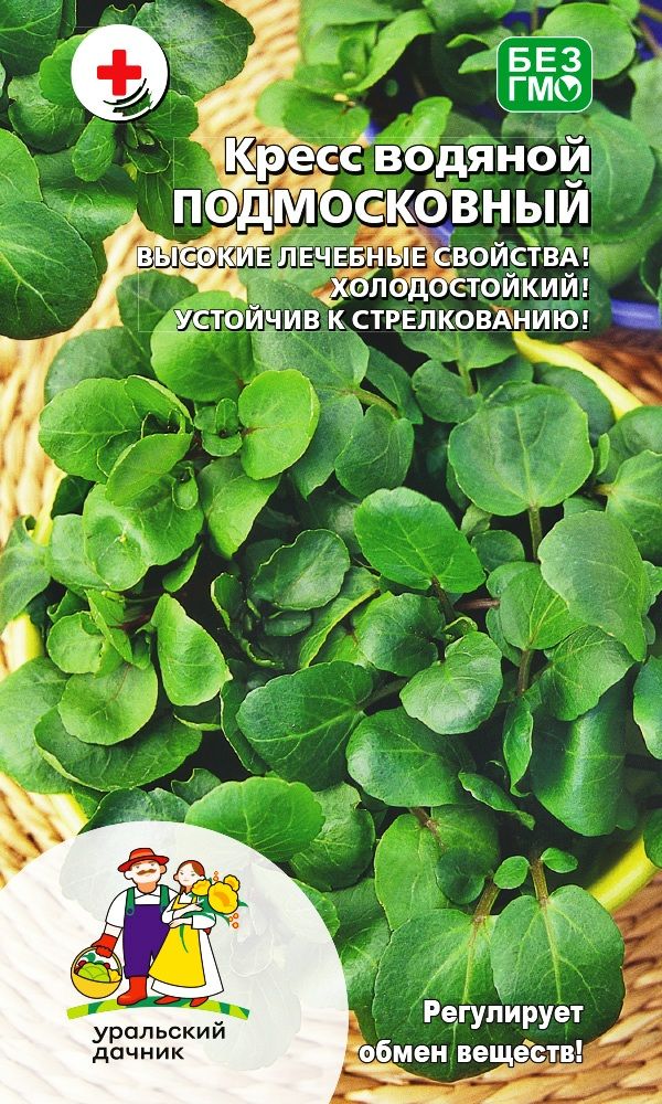 Кресс водяной, он же жируха лекарственная, гулявник, резуха. Раннеспелый сорт. Листья тёмно-зелёные, блестящие, на широких черешках, имеют терпкий горчичный вкус и резкий приятный аромат. В конце весны обильно цветёт мелкими белоснежными цветками, собранными в...