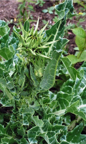 Широко известна как лекарственное растение. Однолетнее колючее растение высотой до 1,5 м. Листья кожистые, с большими белыми пятнами, верхние по краю зубчатые с жёлтыми колючками. Плод – чёрно-жёлтая, блестящая семянка. Корни, листья и бутоны употребляют как овощ,...