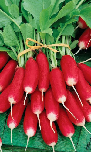 Раннеспелые сорта редиса (срок созревания корнеплодов 16-22 дней) для ранней выгонки в открытом и защищённом грунте. Корнеплоды имеют разную форму, выравненные, различных окрасок: красные, розовые, белые и других цветов. Мякоть белая, нежная, очень сочная. Эфирные масла придают деликатесный слабоострый вкус. Сорта высокоурожайные, устойчивы к растрескиванию корнеплодов и стрелкованию...