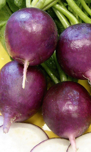 Изумительный вкус и уникальный цвет для любителей ярких салатов. Раннеспелый сорт, период от входов до сбора урожая 25-27 дней. Корнеплоды гладкие, округлой формы, массой 22-24 г, редкого пурпурно-фиолетового цвета. Мякоть белая, плотная, без пустот, хрустящая, сочная, полуострая. Насыщенна витамином С, фолиевой кислотой и флавоноидами, способствующими поддержанию иммунитета и профилактики воспалительных заболеваний. Богата витамином В9, необходимым для роста и регенерации тканей. Сорт устойчив к раннему стрелкованию.