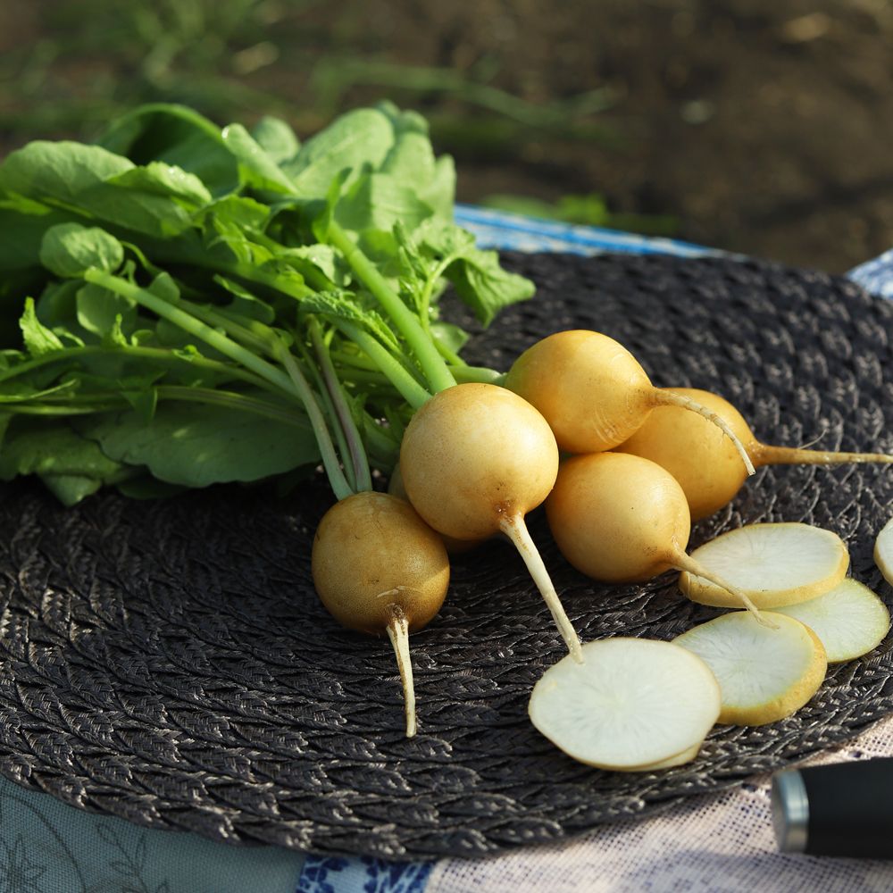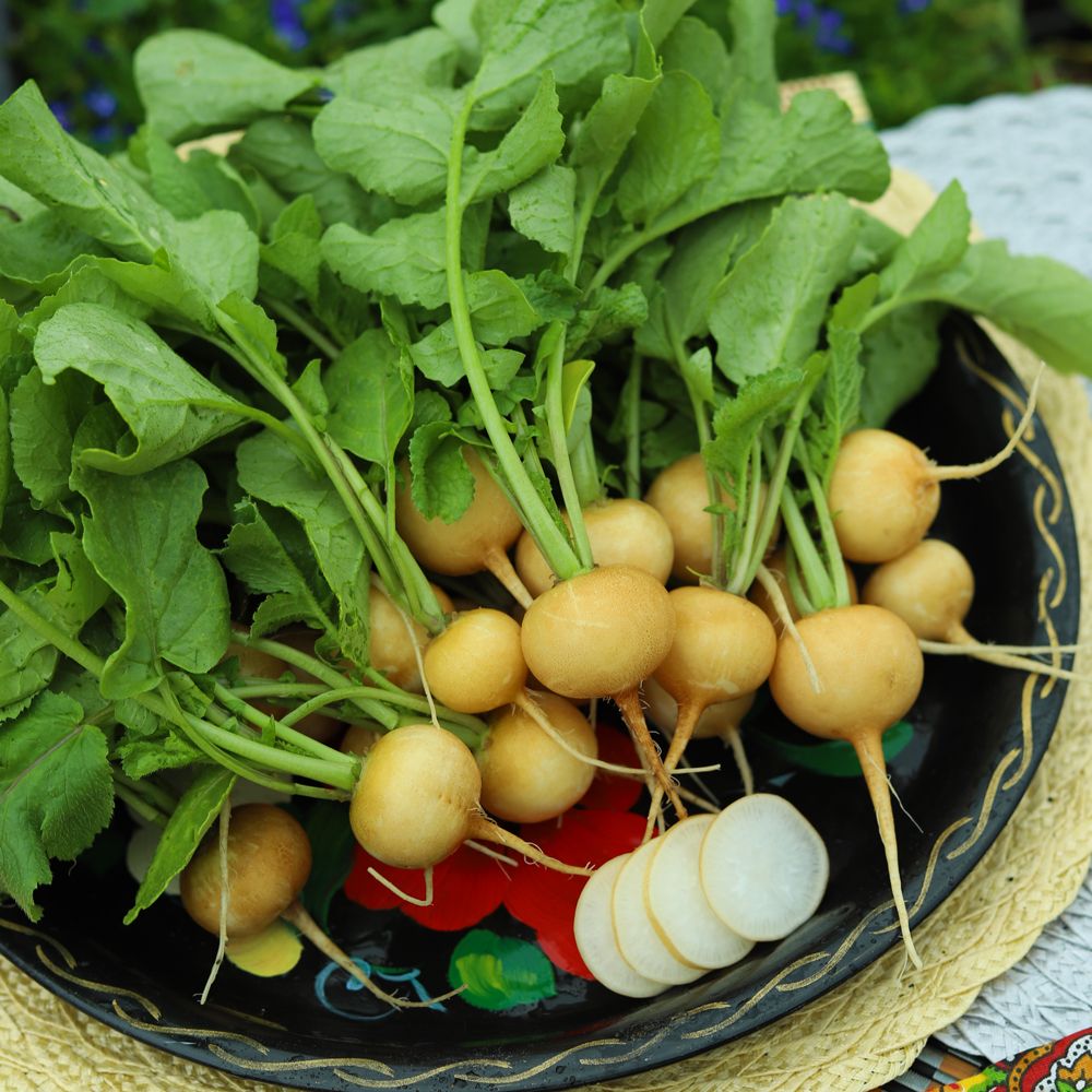 Раннеспелый сорт – от всходов до сбора урожая 20-22 дня. Корнеплод округлый или округло-овальный, с тупым основанием, жёлтый. Мякоть белая, нежная, сочная. По мере нарастания корнеплоды не грубеют, на 20-22 день имеют массу 10-12 г, на 27-28 день – 20-24 г, а при более поздних сроках уборки до 50-60 г. Ценность сорта: высокая урожайность, продолжительный период отдачи урожая, выравненность, высокая товарность, устойчивость к засухе. Рекомендуется для употребления в свежем виде, приготовления салатов и окрошки.