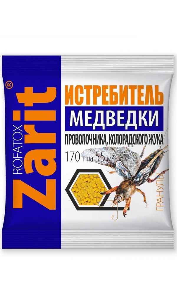 Zarit От медведки – новейшая разработка, основанная на глубоком изучении пищевых предпочтений такого опаснейшего вредителя сельского хозяйства как медведка! Как известно, медведка очень избирательна в еде и народные методы борьбы с ней зачастую не приводят ни к каким результатам. Золотистые шарики с комплексом пищевых ингредиентов, основой которых является натуральная медовая добавка – на сегодняшний день это лучшая защита от медведки!...