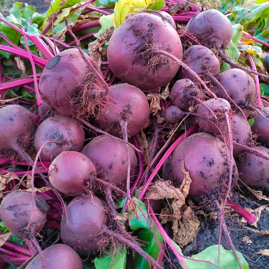 Популярный гибрид с очень высокой урожайностью. Корнеплод округлый, гладкий, тёмно-бордового цвета, массой до 200 гр. Мякоть интенсивно окрашенная, без разделения на кольцевые зоны. Настолько сладкая и нежная, что можно и без варки – сразу в салат!