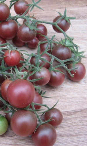 Среднеспелый сорт российской селекции. Полудетерминантный, высота растения 160-180 см. В кисти до 18 плодов оригинальной коричневой окраски. Плоды сливовидные, толстостенные, очень сладкие, массой 60-65 г.Вкусовые качества отличные. Урожайность – 4,8-5,3 кг/м2. Рекомендуется для выращивания в открытом грунте и под плёночными укрытиями. Для использования в свежем виде и цельноплодного консервирования...