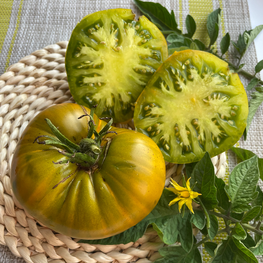 Высокоурожайный среднеспелый сорт для выращивания в открытом и закрытом грунте. Растение индетерминантное, раскидистое. Плоды плоскоокруглые, слаборебристые, изумрудно-зелёного цвета, массой до 400 гр. Ценность сорта - высокая урожайность, крупноплодность, оригинальная окраска плодов и высокие вкусовые качества.Предназначен как для потребления в свежем виде, так и для переработки...