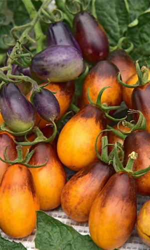 Новый вкусный гибрид с оригинальной окраской созревших плодов. Два оттенка спелых слив – густой фиолетовый и насыщенный жёлтый слились воедино в каждом томате. Грушевидные плоды массой по 40 грамм с высоким содержанием антоциана и каротина. Растения высотой 90-150 см в идеальных условиях каждое потенциально могут дать до 300 красивых и полезных плодов!...
