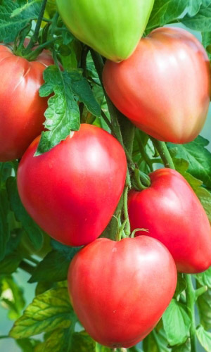 Суперурожайный среднеспелый сорт. Растение высокорослое (160-190 см). Плоды сердцевидной формы, мясистые, очень сладкие и вкусные, массой до 900 г. Отличается высокой устойчивостью к болезням: альтернариозу, фузариозу, вирусу табачной мозаики. Рекомендуется для использования в свежем виде и приготовления томатопродуктов. Идеален для приготовления томатов в собственном соку...