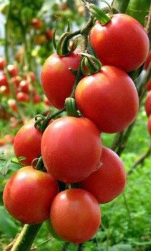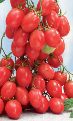 Необычайно урожайный, среднеспелый сорт для открытого и закрытого грунта. Растение штамбовое, высотой 100-130 см. Плоды ярко-красные, глянцевые, сливовидной формы, массой 80-120 г, плотные, без сочленения в плодоножке, долго хранятся на растениях и после уборки.Ценность сорта: очень высокая урожайность, жаростойкость, устойчивость к растрескиванию плодов и комплексу заболеваний. Рекомендуется для потребления в свежем виде, кулинарной переработки и цельноплодного консервирования...