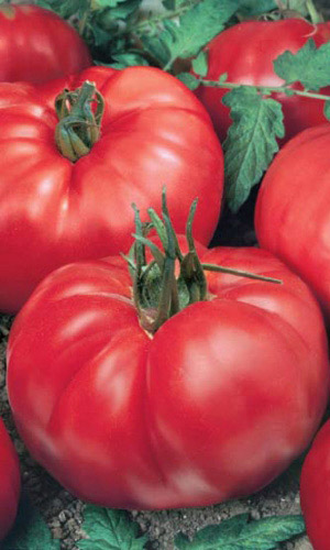 Среднеспелый крупноплодный сорт для плёночных теплиц и открытого грунта. Куст мощный, высотой 100-170 см. Плоды малиново-красные, мясистые, красивой сердцевидной формы, очень крупные, массой 400-700 г, отдельные до 1,2 кг, великолепны в салатах и заготовках на зиму. К достоинствам сорта, кроме того, относятся хорошая завязываемость плодов и достаточно высокая устойчивость к болезням. Сорт выращивают в 2 стебля...