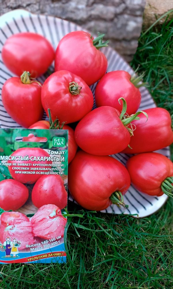 Суперурожайный среднеспелый сорт. Растение высокорослое (160-190 см). Плоды сердцевидной формы, мясистые, очень сладкие и вкусные, массой до 900 г. Отличается высокой устойчивостью к болезням: альтернариозу, фузариозу, вирусу табачной мозаики. Рекомендуется для использования в свежем виде и приготовления томатопродуктов. Идеален для приготовления томатов в собственном соку...