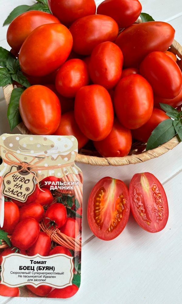 Ведро с куста? Легко! При этом без особых усилий! А как хорош в засолке! Раннеспелый, супер неприхотливый сорт. Плоды красные, мясистые, сливовидные, массой 50-60 г, сочные, вкусные, идеальны для консервирования. Не требует подвязки и пасынкования.На рассаду семена высевают в...