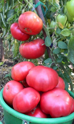 Высокоурожайный раннеспелый крупноплодный сорт для открытого и закрытого грунта. Плоды малиновые, плоскоокруглой формы, массой до 300 г, мясистые, очень сочные.Ценность: высокая урожайность, отличные вкусовые качества, устойчивость к болезням и колебаниям температуры. Рекомендуется для употребления в свежем виде, приготовления соков, томатной пасты и кетчупа...