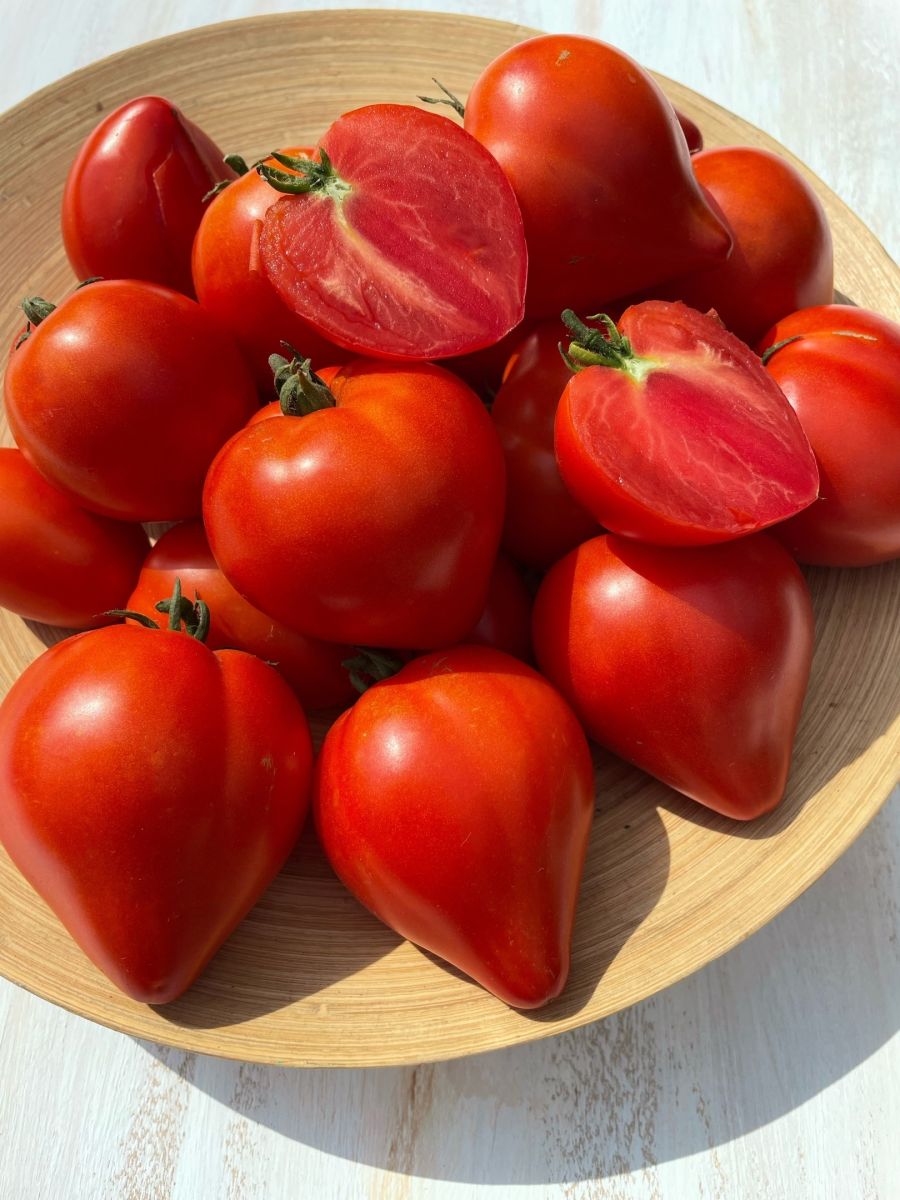 Плоды с насыщенно розово-малиновой окраской и сердцевидной формой, достигают массы до 800 граммов, отличаются высокой мясистостью, сладостью и сочностью. Данный сорт обладает универсальностью применения, демонстрируя высокую пищевую ценность как в свежем виде, так и в переработанной форме, включая консервацию.