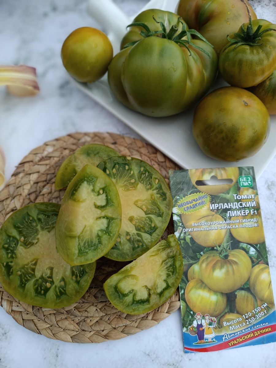 Гибрид томата Ирландский ликёр F1 превосходит стандартный сорт Малахитовая шкатулка по общему урожаю на 9-11 %, по выходу зрелых плодов на 32 %.