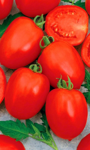 Очень урожайный, раннеспелый сорт. Растение детерминантное, высотой 50-55 см. Плоды овальные, с небольшим носиком, красные, массой 70-80 г, плотные, гладкие, устойчивы к растрескиванию, не поражаются вершинной гнилью.