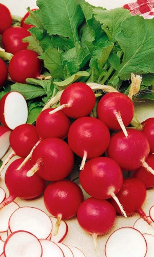 Новый ультраскороспелый, всесезонный гибрид (срок созревания 16-18 дней после посева), устойчивый к стрелкованию. Корнеплоды тёмно-красные, очень крупные, плотные, округлые, массой 25-35 г. Мякоть нежная, белая, сочная, без горечи, вкусовые качества отличные.Используется для приготовления салатов (не только корнеплоды, но и сами листья), содержит витамины, минеральные соли, которые ускоряют процесс пищеварения...