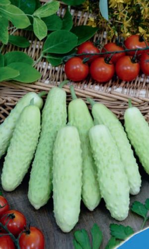Высокоурожайный скороспелый гибрид для открытого грунта и парников. Зеленцы короткие, крупнобугорчатые, белошипые, массой 70-85 г, плотные, хрустящие, без пустот, сладкие, ароматные, генетически без горечи. Рекомендуются для использования в свежем виде, для засолки и консервирования. Ценность гибрида: ранняя и высокая урожайность, устойчивость к настоящей и ложной мучнистой росе, дружное плодоношение, отличные вкусовые качества, высокая товарность...