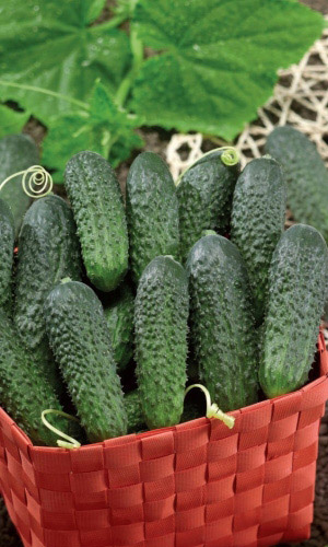 Букетное расположение завязей;Изобилие вкусных корнишонов.Переносит резкие перепады температур. Партенокарпический гибрид для защищённого и открытого грунта. От всходов до плодоношения 38-42 дня. Более 5-ти завязей в узле. Плоды цилиндрической формы, без горечи, длиной 7-9 см, тёмно-зелёной окраски с короткими полосами, крупнобугорчатые, белошипые. Масса 90-120 г. Устойчив к кладоспориозу, настоящей мучнистой росе, корневым гнилям, вирусу огуречной мозаики. Рекомендуется для маринования...